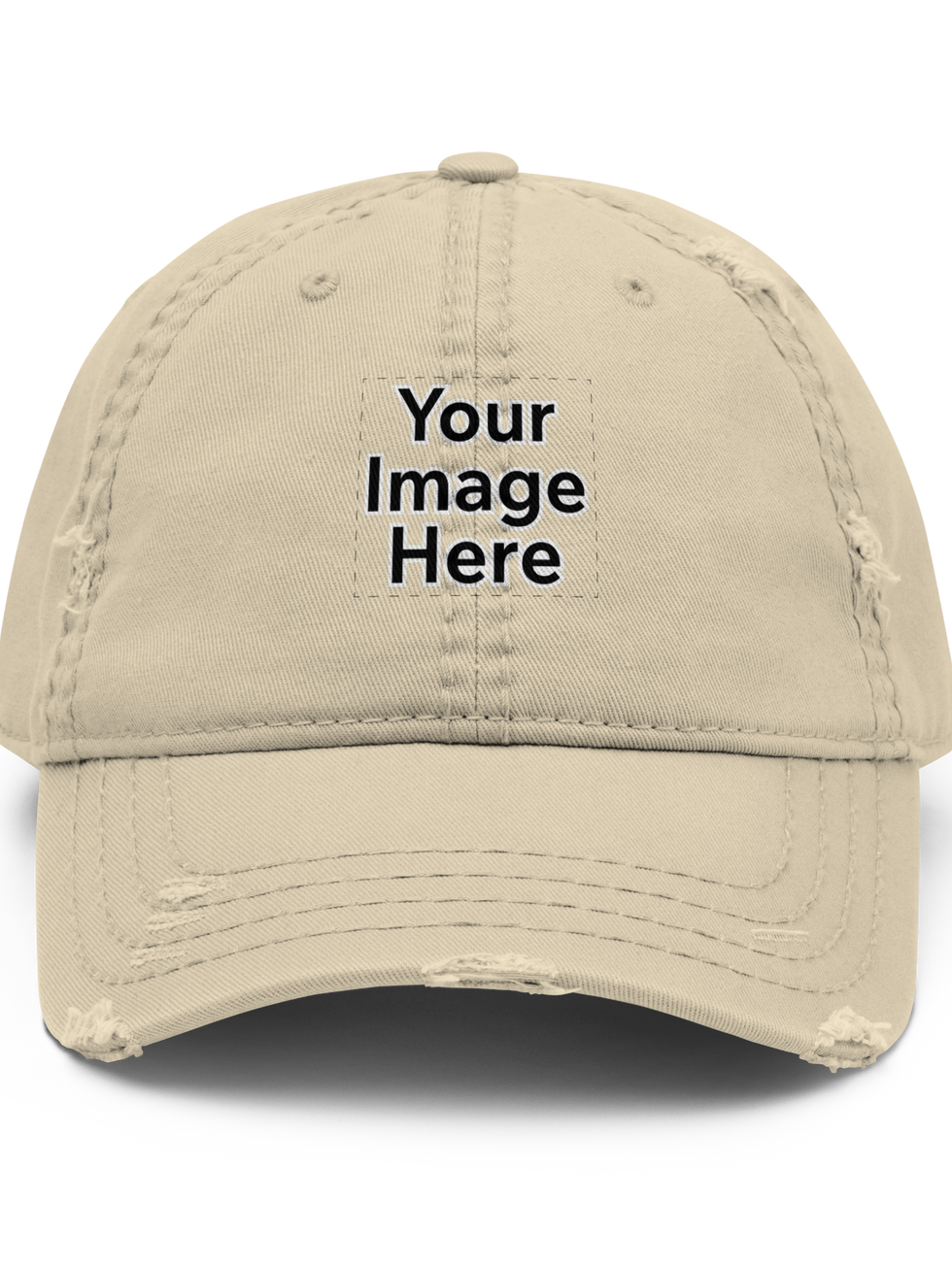 Expand your headwear collection with this fashionable Dad Hat. The fabric on its brim and crown is distressed, giving the hat an edgy look. 100% pre-shrunk cotton twill. Unstructured 6-panel cap with a low profile. Soft crown. 6 sewn eyelets. 4 stitched rows on the brim. Adjustable hook-and-loop closure. Seamed front panel without buckram. Blank product sourced from China. This product is made on demand. No minimums.